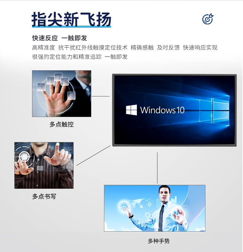 觸控一體機是一種定位設備,用戶可以直接用手向計算機顯示器表面輸入坐標信息。它和鼠標、鍵盤一樣,是一種輸入設備。它采用的觸摸屏具有堅固耐用、反應速度快、節省空間、易于交流等許多優點。利用這種技術,只要用手指輕輕地指碰計算機顯示屏上的圖符或文字就能實現對主機操作,從而使人機交互更為直接了當。