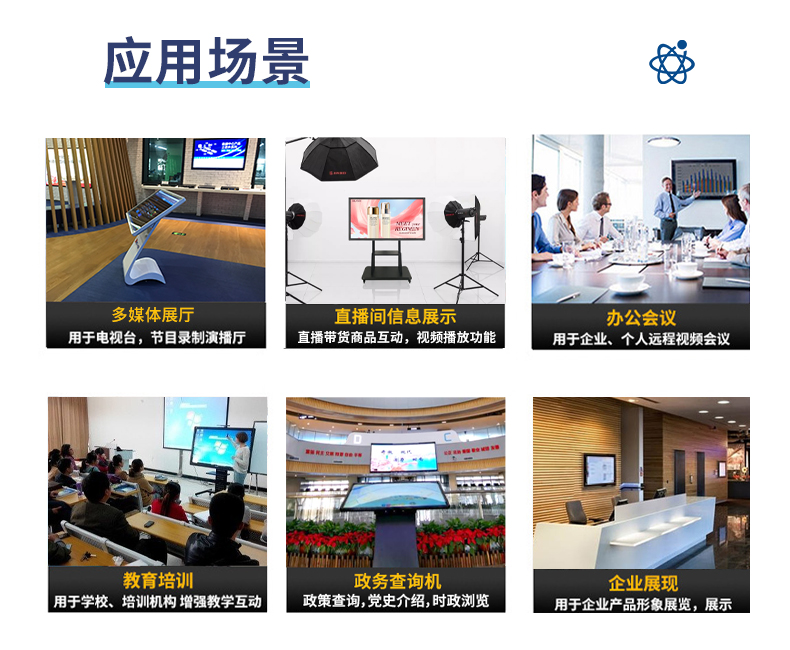 觸控一體機的應用范圍非常廣闊,主要有公共信息的查詢,如電信局、稅務局、銀行、電力等部門的業務查詢;城市街頭的信息查詢;此外還可廣泛應用于企業辦公、工業控制、軍事電子沙盤、電子游戲、點歌點菜、多媒體教學、房地產預售等。